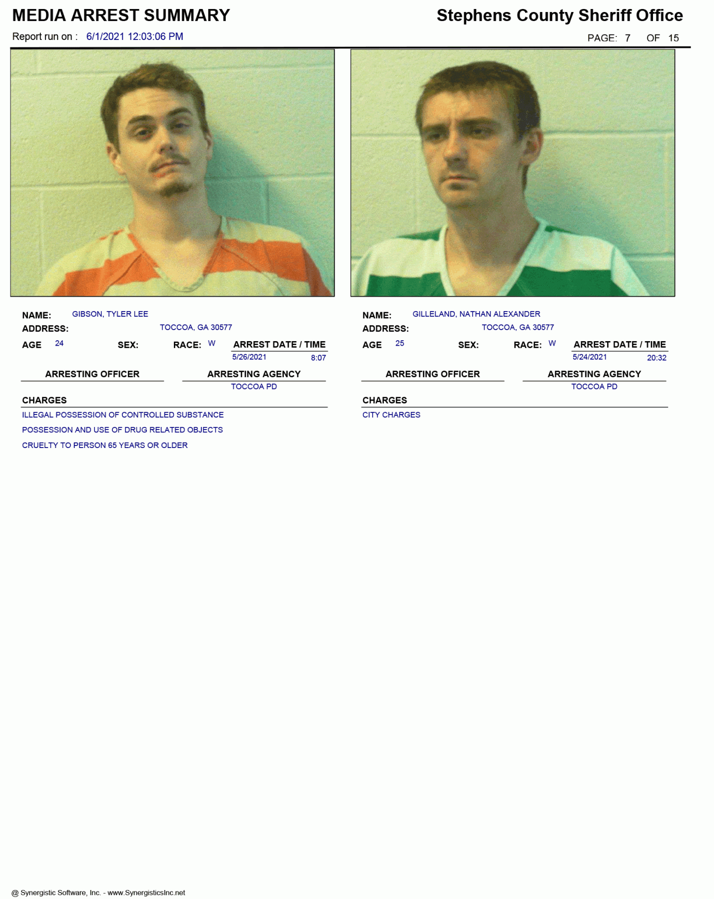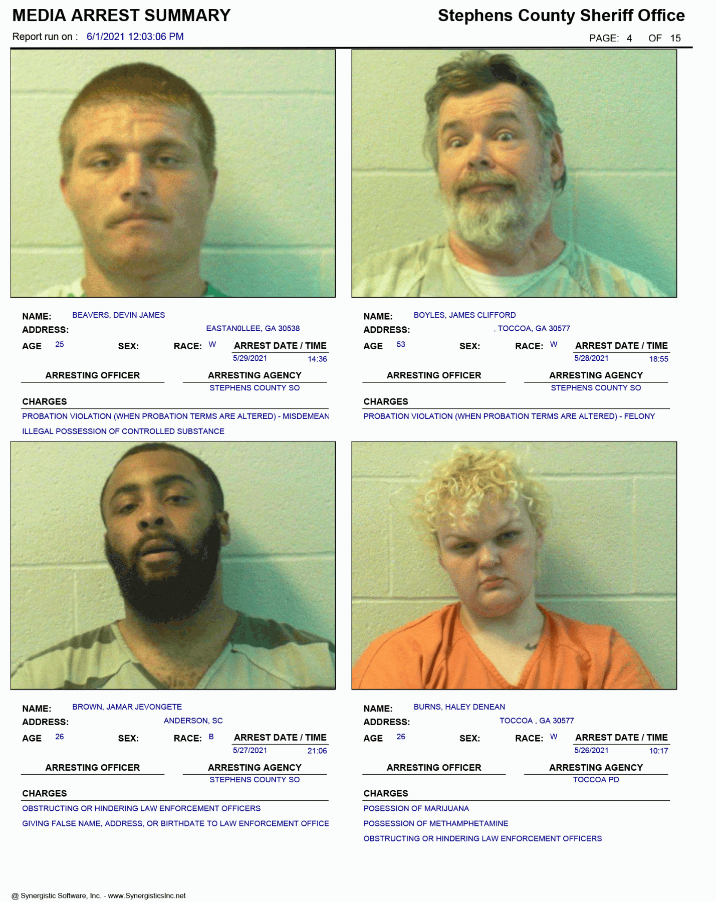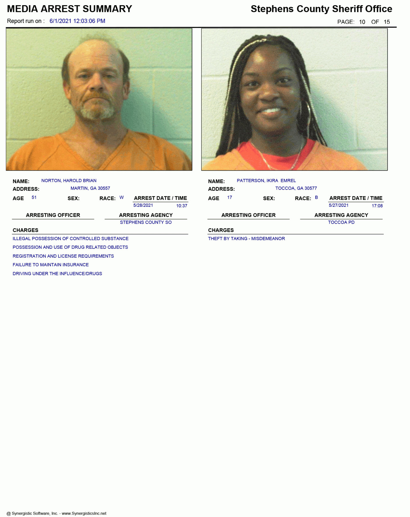 The Georgia Open Records Act (O.C.G.A. 50-18-70) allows for FetchYourNews.com to obtain and post the arrest records/booking report of any and all individuals arrested in Stephens County. Those arrests are posted on FetchYourNews.com for viewing pleasure. Please remember that all individuals listed have been arrested and charged, however, they are presumed innocent until guilt has been proven in a court of law. FYN publishes the arrest report provided by the SCSO.